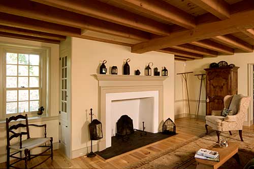 room. An exposed re-sawn antique hemlock summer beam and joists support